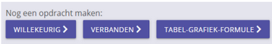 Leerlingen kiezen in het startscherm een categorie waarmee ze aan de slag gaan. In dit geval ‘Verbanden’. Ze krijgen dan een willekeurige oefening. In dit geval is dat een oefening uit de subcategorie 'Tabel-Grafiek-Formule'.Als ze deze opdracht hebben gemaakt, krijgen ze de volgende drie opties (buttons):