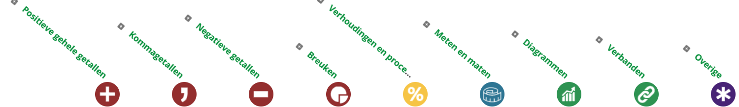 Klik op het plusteken van bijvoorbeeld 'Positieve gehele getallen'. Je ziet dan de subcategorieën van de categorie 'Positieve gehele getallen'.In de linker kolom van bijvoorbeeld 'Machten en wortels' zie je het startniveau van de subcategorie van de leerling. In de rechter kolom zie je het huidige niveau van de subcategorie 'Machten en wortels'. Zo zie je per subcategorie de totale groei.