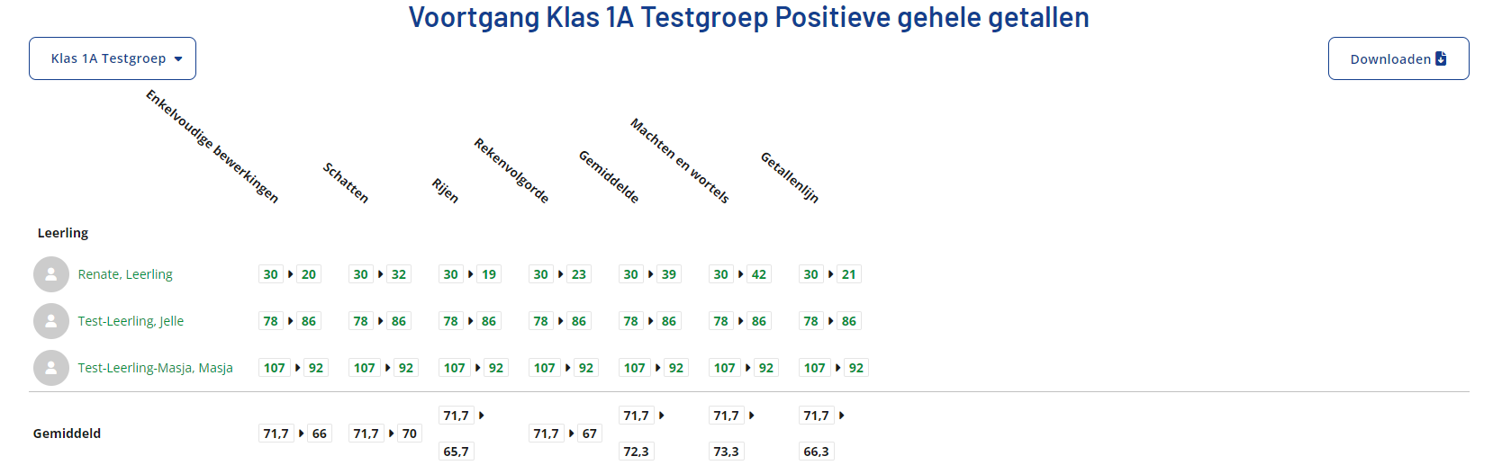 Bij voortgang zie je altijd eerst je eigen voortgang (als leerling en docent). Om de voortgang van een (sub)categorie te bekijken, klik je op de homepage rechtsboven op ‘Voortgang’.