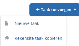 Met de knop '+ Taak toevoegen' kan er gekozen worden uit 'Nieuwe taak' of 'Rekensite taak kopiëren'.