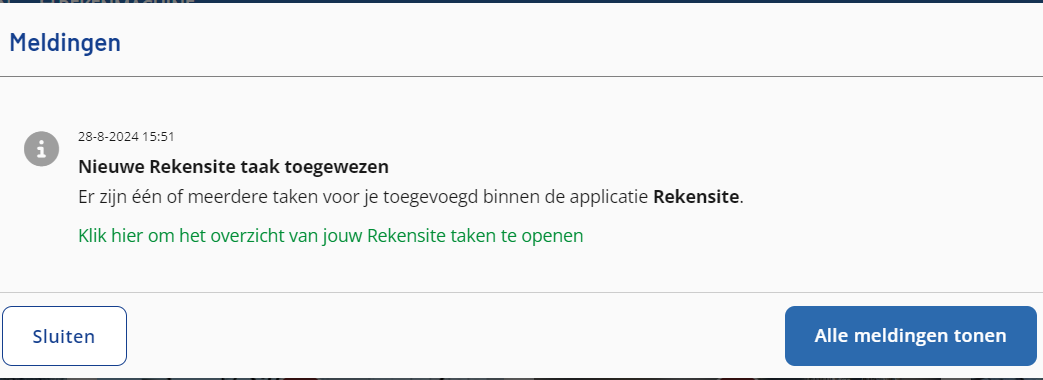 Door op de knop 'alle meldingen tonen' te klikken, zie je een overzicht van alle nieuwe taken die toegewezen zijn.