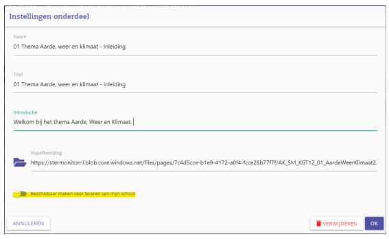 Wanneer je eigen content hebt gemaakt, kun je dit delen met collega’s. Zo wordt het ‘schoolcontent’. Zij kunnen dan een kopie maken van jouw content en deze aan hun klas koppelen. Of jij kunt natuurlijk content van een collega gebruiken.Zo maak je een onderdeel beschikbaar als leraar: